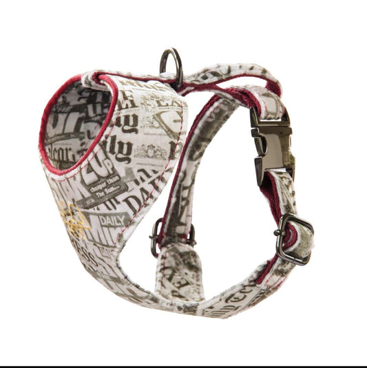 Newspaper Print Velvet Dog Harness – Designer Edition