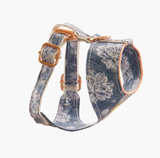 Blue Floral Velvet Dog Harness – Rose Gold Edition