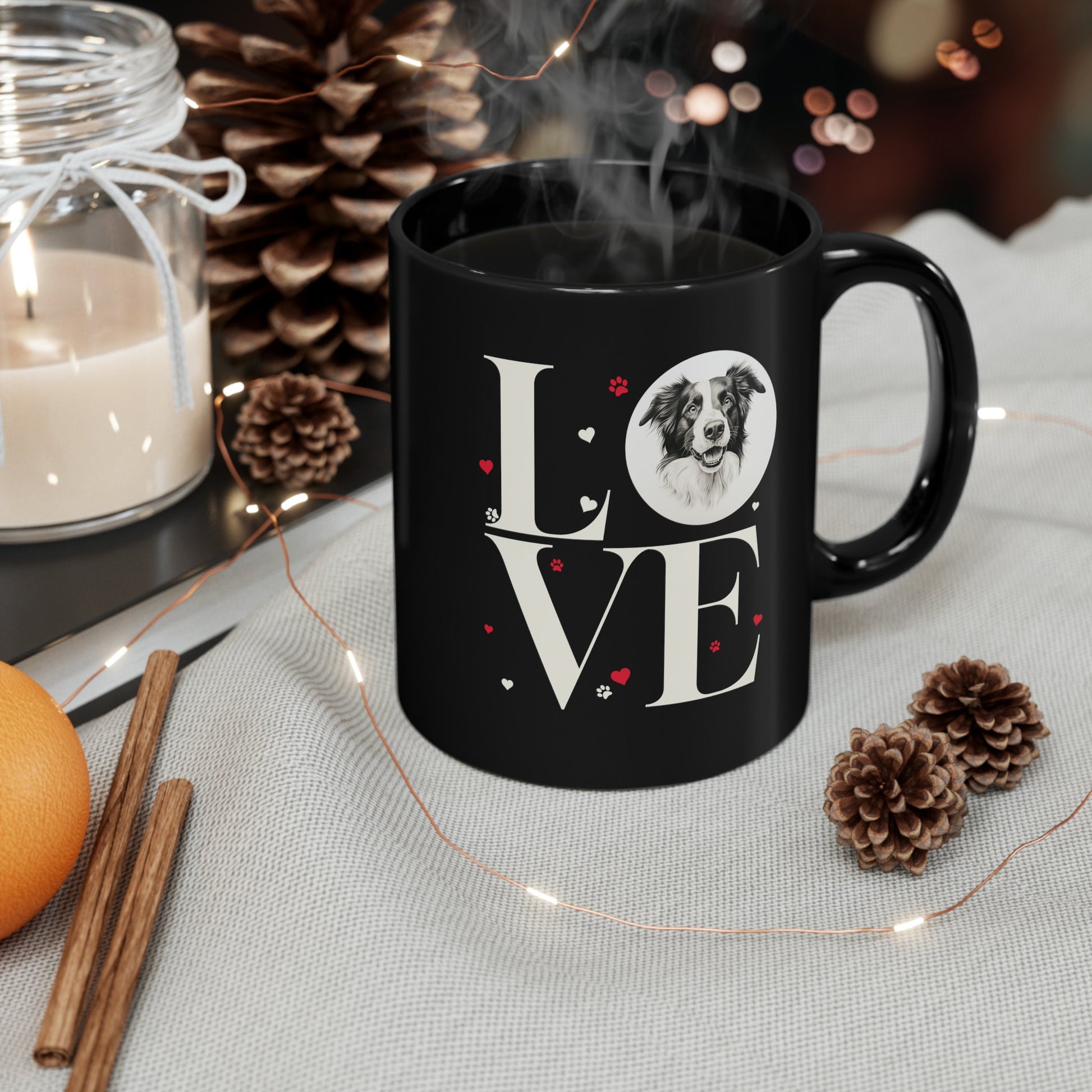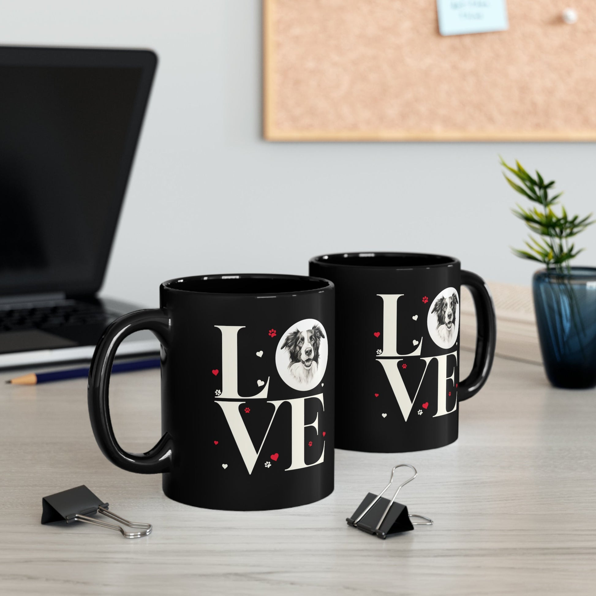 This 11 oz black coffee mug is the perfect gift for Australian Sheperd dog lovers. With a comfortable accented C-Handle and a contrasting interior, this mug is a must-have for any Aussie dog mom or owner. Enjoy your morning coffee in style with this unique and charming Aussie Mug.