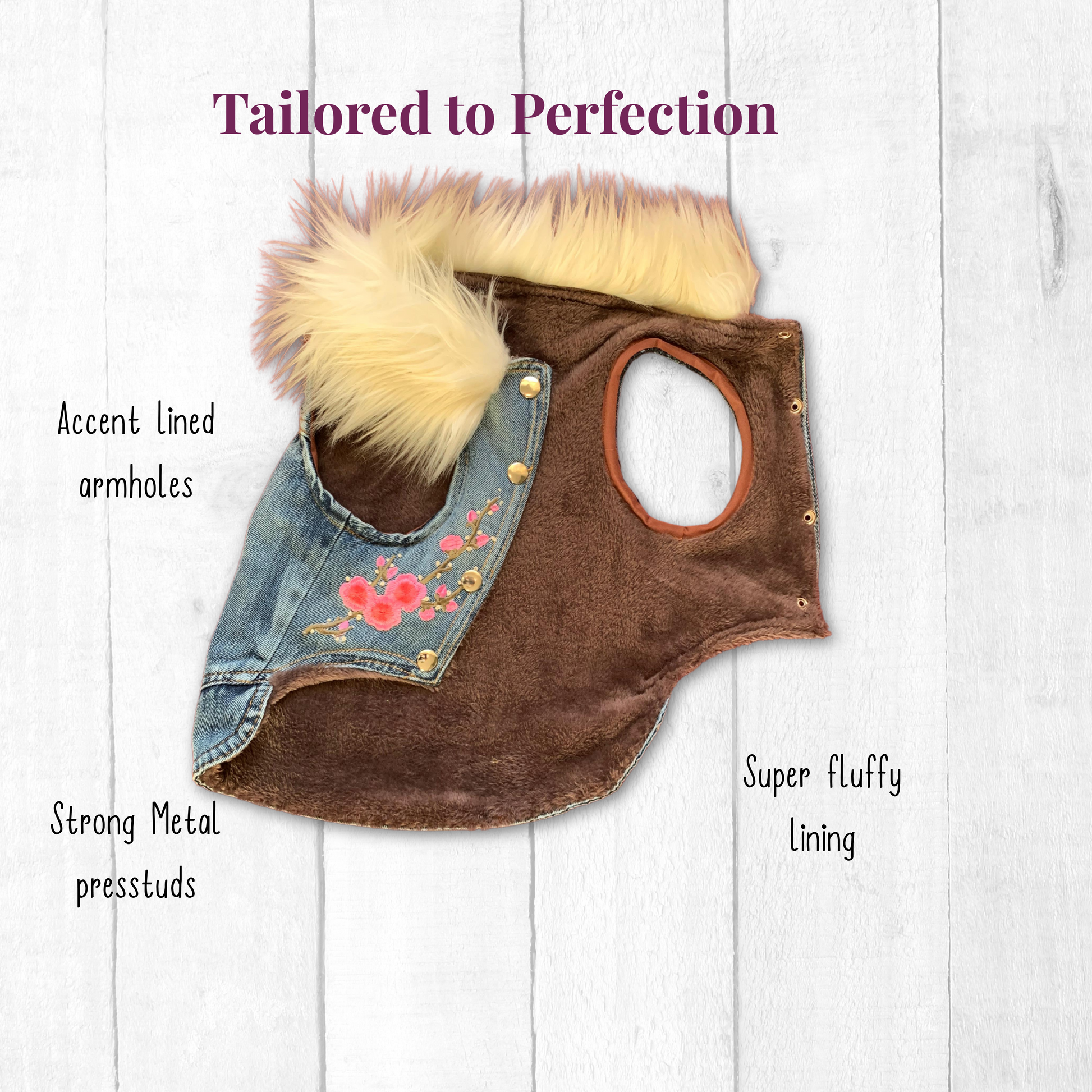 Introducing our bespoke luxury denim dog jackets, the epitome of canine couture! Each jacket is a one-of-a-kind piece, meticulously crafted to ensure your furry friend stands out in style. Our jackets feature a vibrant mix of patchwork, embroidery, Sashiko stitching, making each piece truly unique.