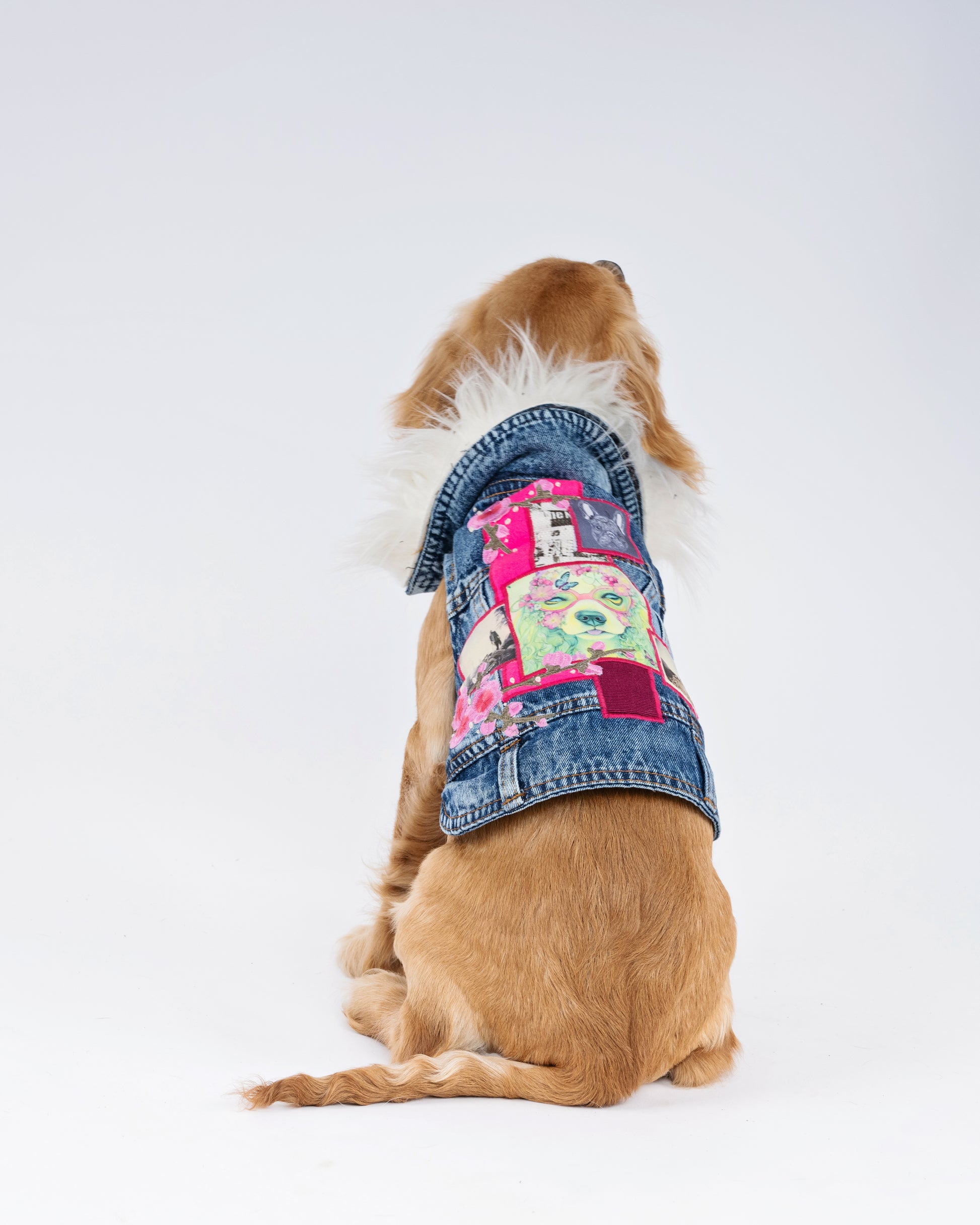 Introducing our bespoke luxury denim dog jackets, the epitome of canine couture! Each jacket is a one-of-a-kind piece, meticulously crafted to ensure your furry friend stands out in style. Our jackets feature a vibrant mix of patchwork, embroidery, Sashiko stitching, making each piece truly unique.