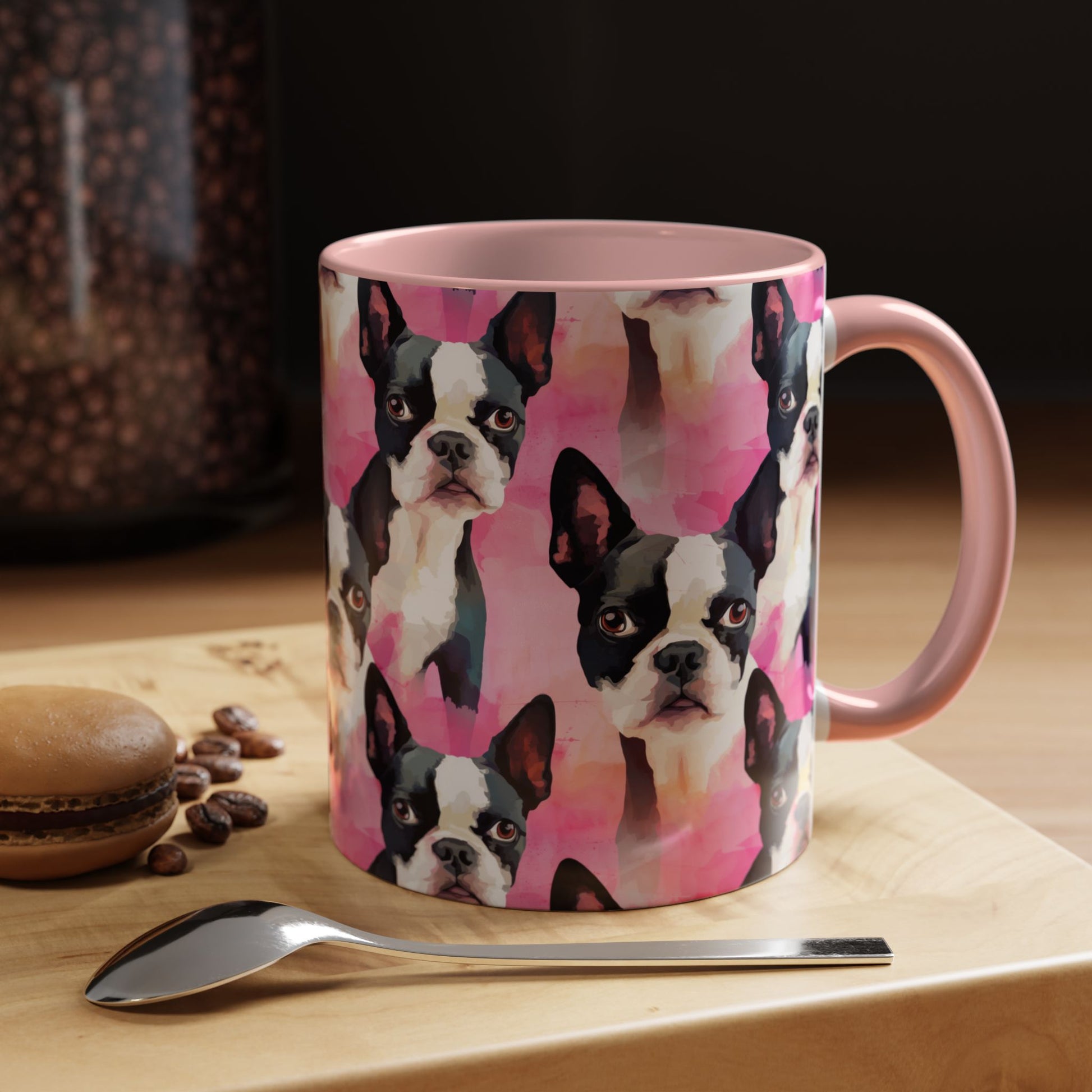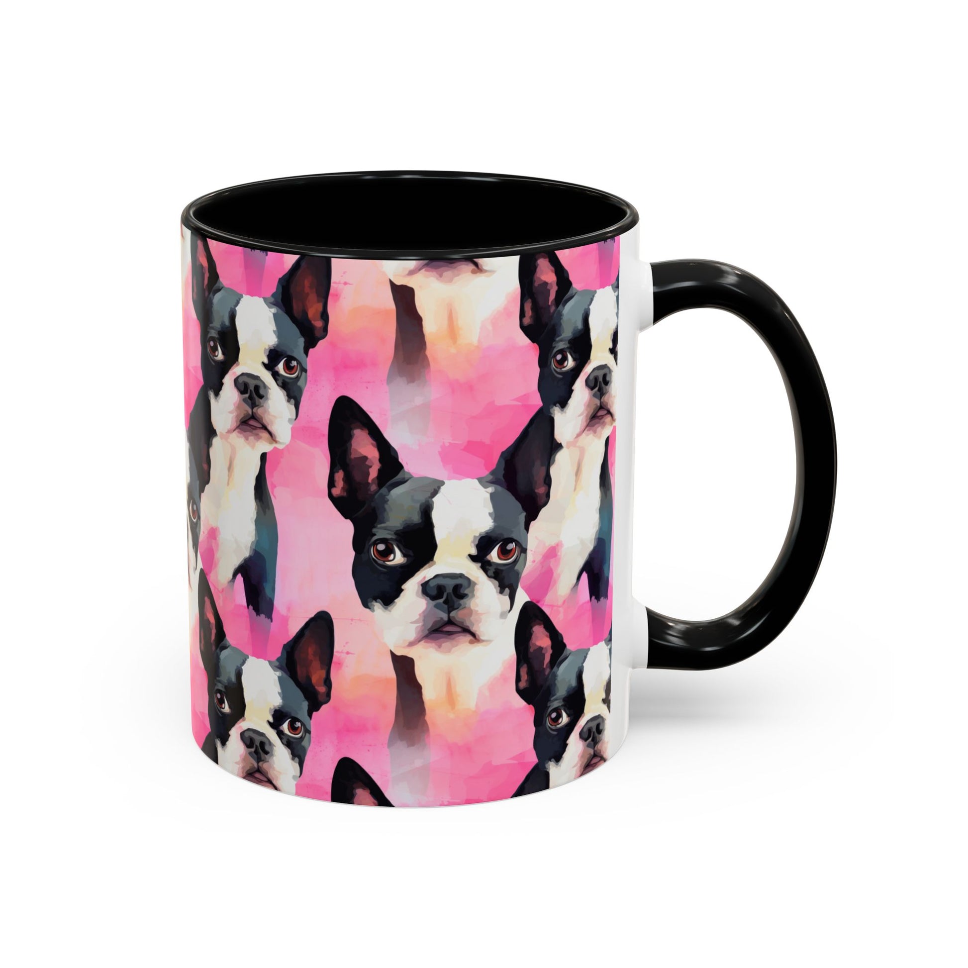 This 11 oz two-tone coffee mug is the perfect gift for Boston dog lovers. With a comfortable accented C-Handle and a contrasting interior, this mug is a must-have for any Boston dog mom or owner. Enjoy your morning coffee in style with this unique and charming Boston Mug.
