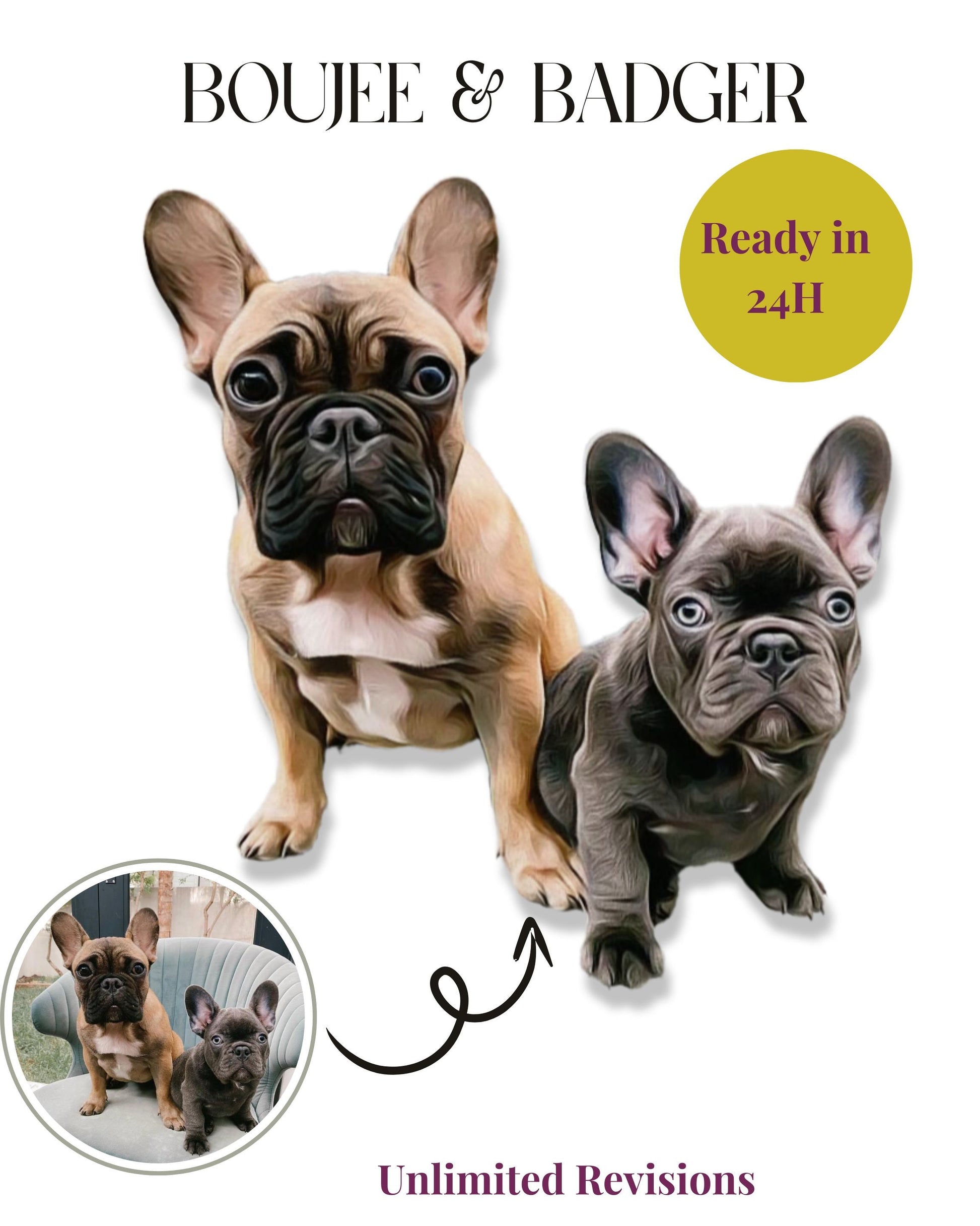 Capture the essence of your furry family member with our incredible custom digital portrait art! Using high-quality digital brushes on Photoshop, we create a modern, high-resolution final product that will be finished within 24 hours of receiving your pet's pictures.