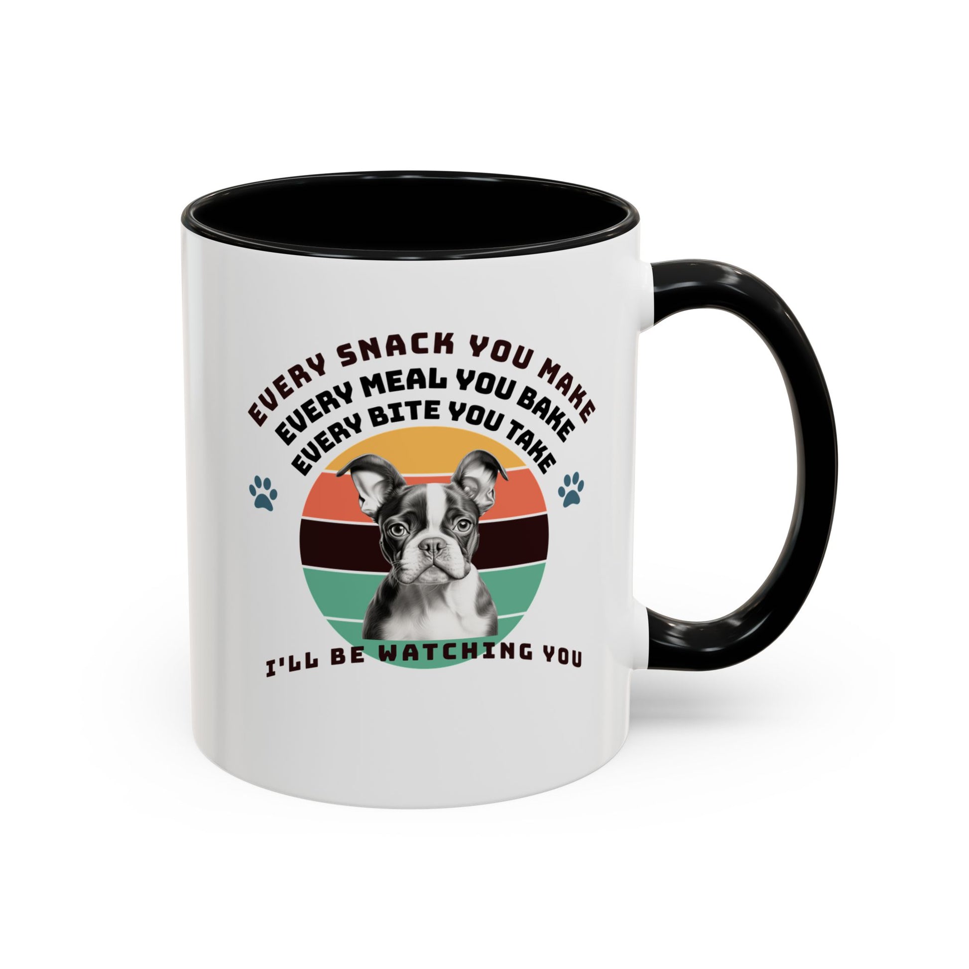 This 11 oz two-tone coffee mug is the perfect gift for Boston dog lovers. With a comfortable accented C-Handle, this mug is a must-have for any Boston dog mom or owner. Enjoy your morning coffee in style with this unique and charming dog mug.
