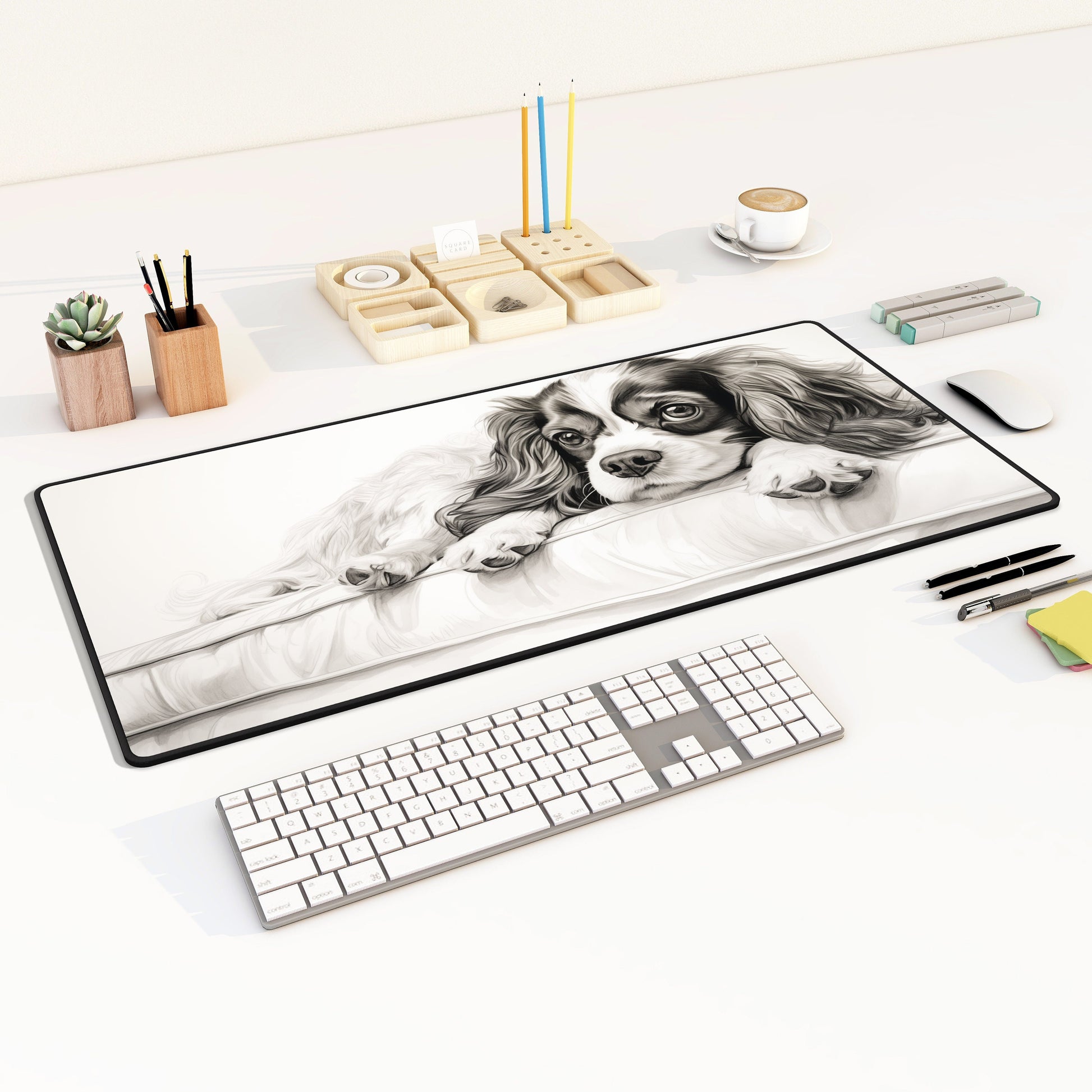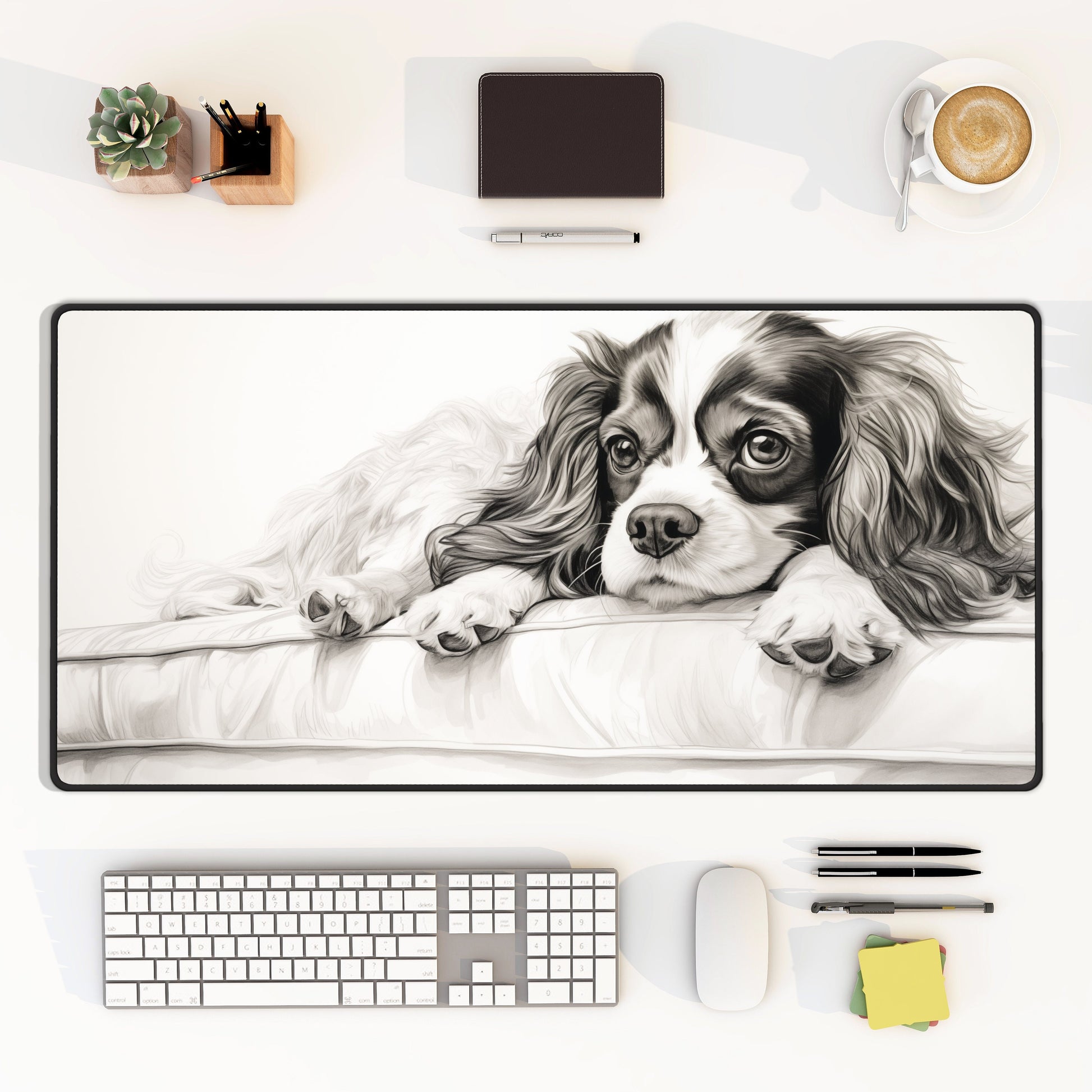Introducing our customizable Desk Mat featuring a charming and elegant drawing of a King Cavalier! Elevate your workspace with this versatile and stylish accessory that combines functionality with personalization. Whether you're a King Cavalier owner, a dog lover, or simply someone who appreciates unique and adorable designs, this desk mat is the perfect choice for adding charm to your workspace.